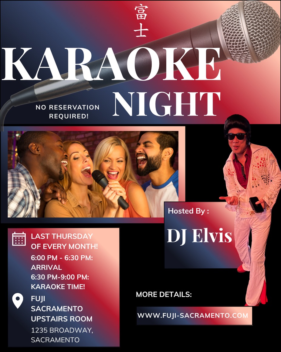 Join us in our upstairs banquet room once a month for karaoke nights at Fuji!✨